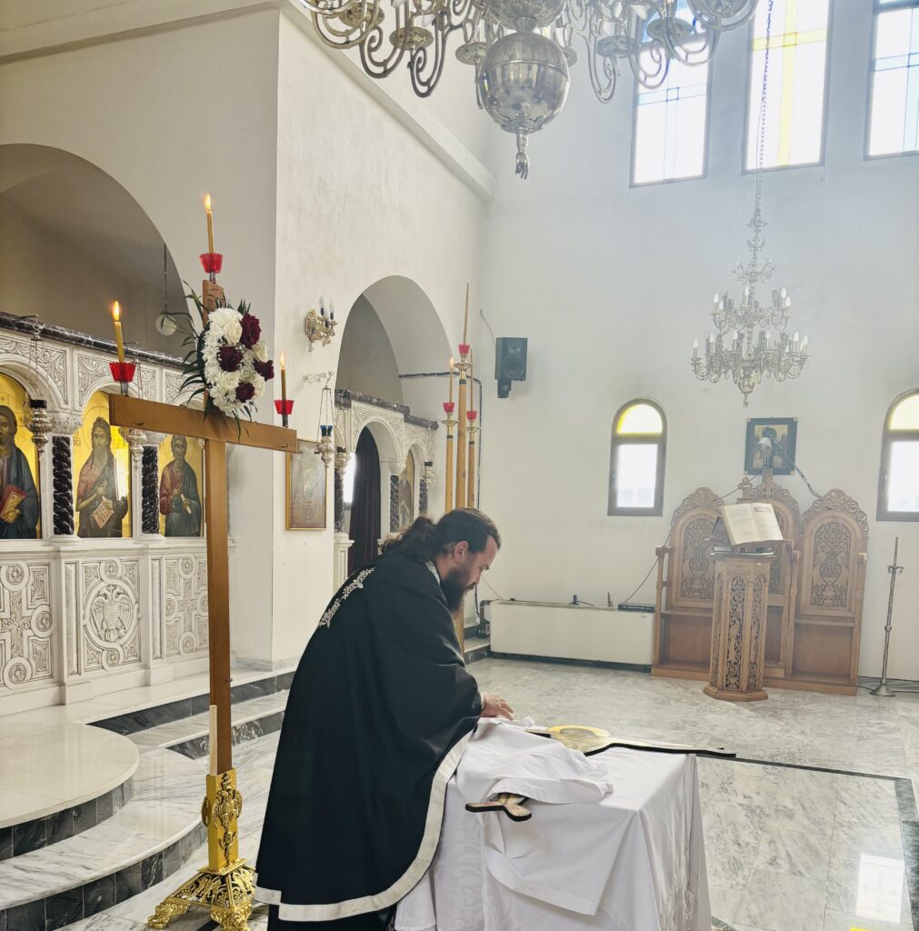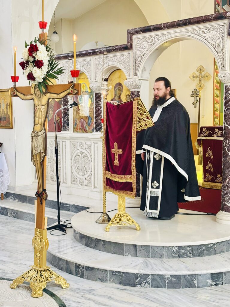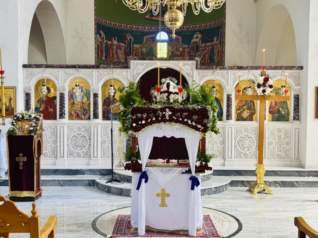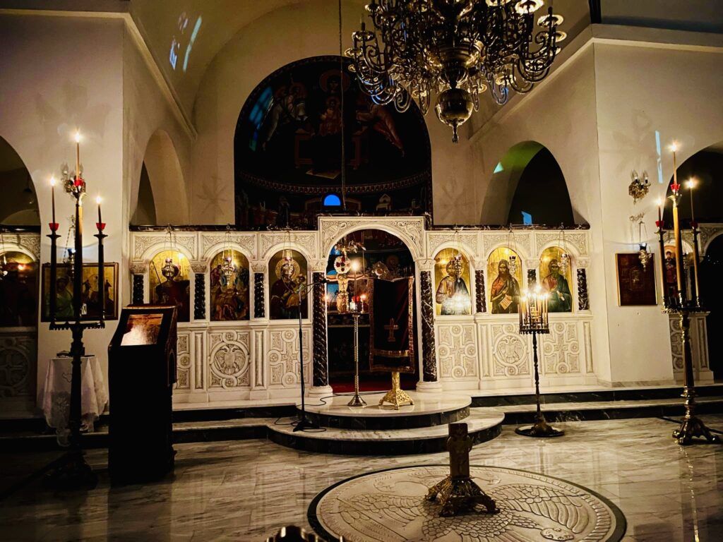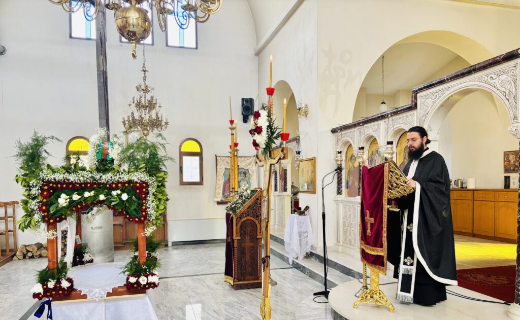 ῏Ην δὲ ἐκεῖ Μαρία ἡ Μαγδαληνὴ καὶ ἡ ἄλλη Μαρία, καθήμεναι ἀπέναντι τοῦ τάφου.